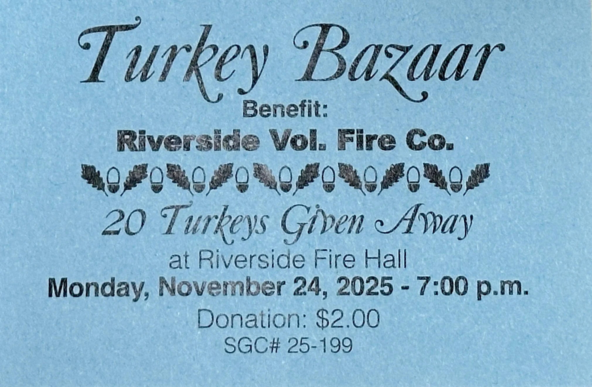Check out the latest items from Riverside Volunteer Fire Company. Categories: All General Items Pie Shoppe Fundraiser RVFC Store All | General Items | Pie Shoppe Fundraiser | Turkey Raffle Chance $2.00 Add To Cart Added! 2025 Christmas Cash Giveaway $10.00 Add To Cart Added! 16oz Travel Mug $20.00 Add To Cart Added! Chocolate Meringue $12.00 Add To Cart Added! Coconut Cream $12.00 Add To Cart Added! Lemon Meringue $12.00 Add To Cart Added! Apple $12.00 Add To Cart Added! Blackberry $12.00 Add To Cart Added! Harvest $12.00 Add To Cart Added! Cherry $12.00 Add To Cart Added! Dutch Apple $12.00 Add To Cart Added! Peach $12.00 Add To Cart Added! Raisin $12.00 Add To Cart Added! Razzleberry $12.00 Add To Cart Added! Pumpkin Pie $12.00 Add To Cart Added! Pumpkin Roll $12.00 Add To Cart Added!